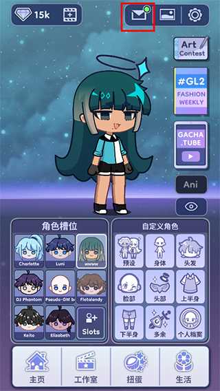 1、进入游戏后点击信封标志