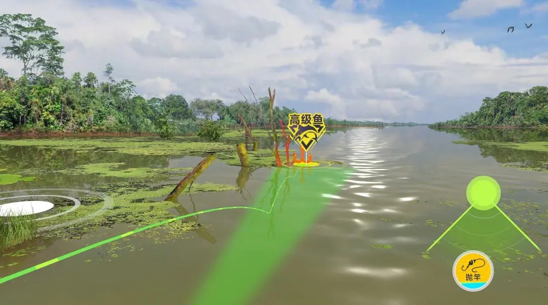 路亚的抛竿需要注意,水域上会存在障碍物,抛竿时轨迹是绿色的才是成功抛竿。