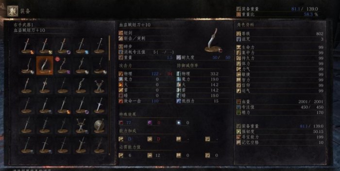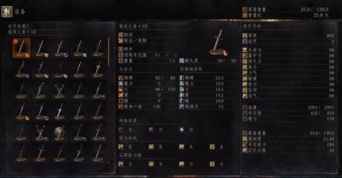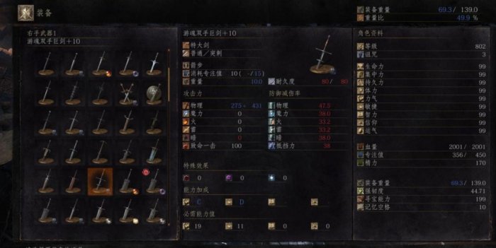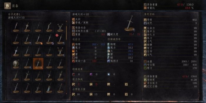 是黑魂里DPS第一甚至第二的高口牙!作为PVE三幻神之一乃至之首,阔剑的绝绝子毋须赘述。有一个很大的误区,就是很多人推荐厚重阔剑。这是版本变化导致的误区。在很久以前的一次更新里,直剑全体变为敏捷武器,所以厚重质变的补正被削弱而锋利增强,此消彼长,锋利质变已经成为最适合阔剑的质变了。+10锋利阔剑敏捷为A相当强力。